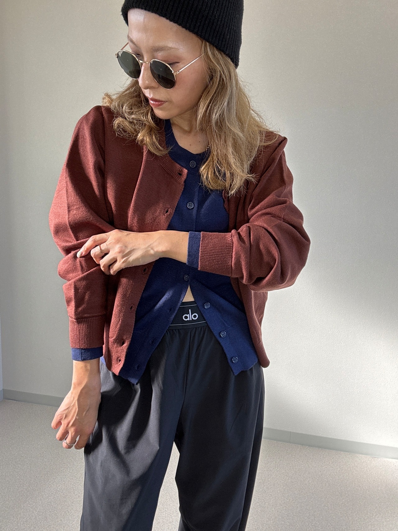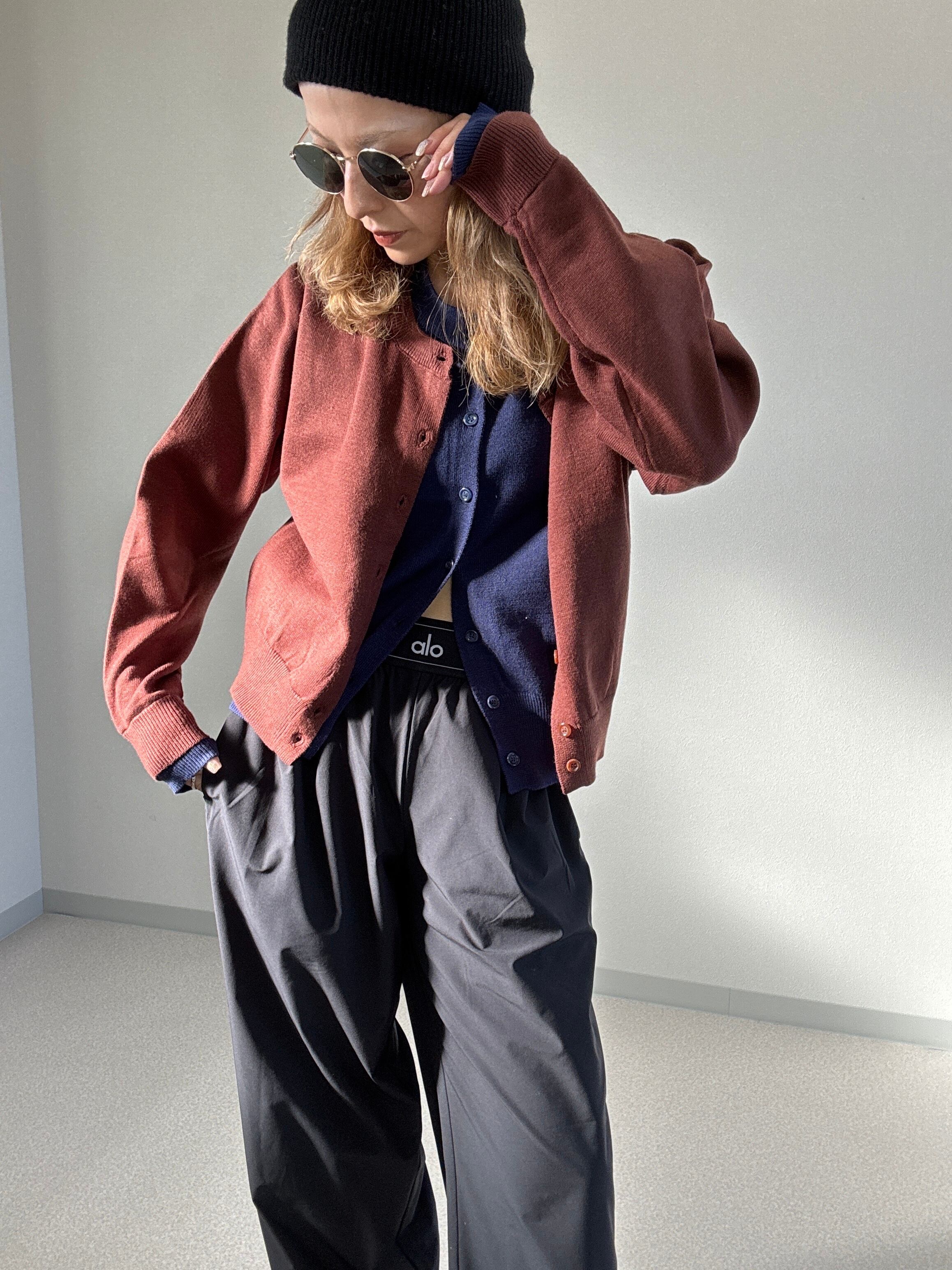 クールクール配色レイヤードライクカーディガン brown