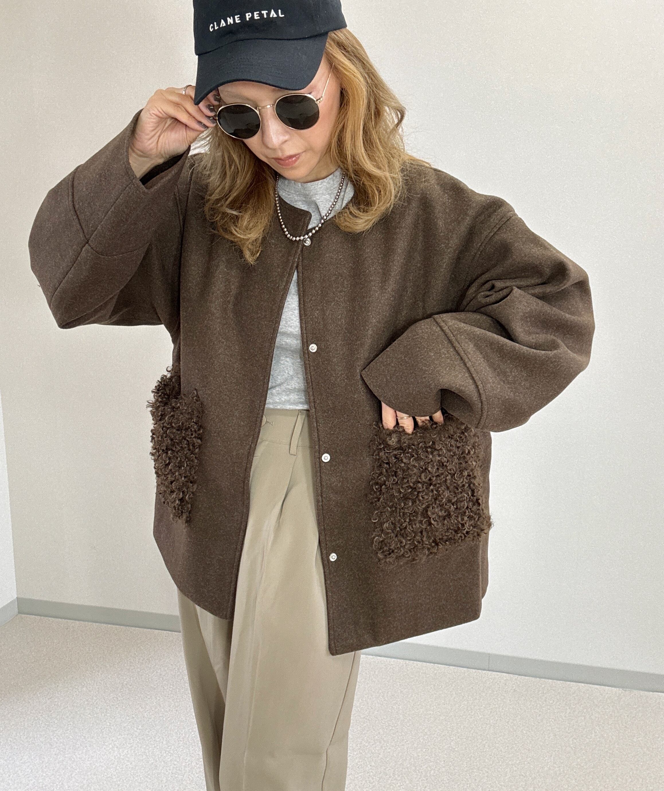 異素材のポケットファーがアクセントで可愛らしい印象に◎