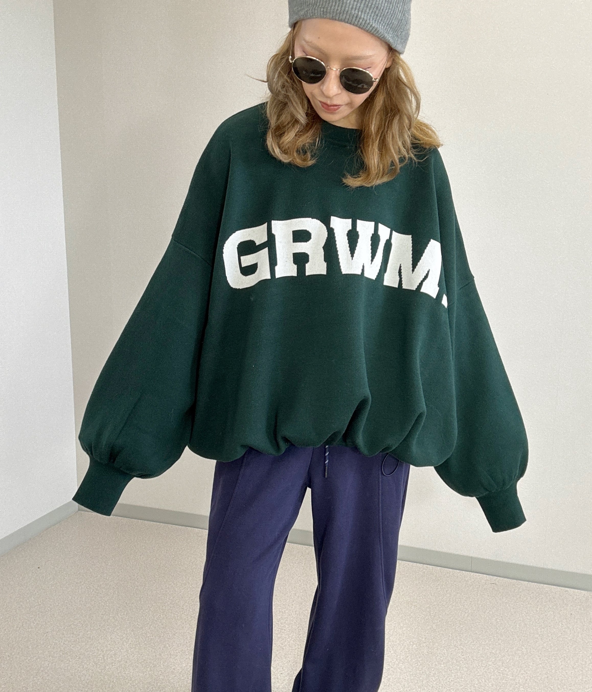 大胆にあしらわれた「GRWM(Get Ready With Me)」のジャカードロゴが視線を惹きつけ、デイリーに着回せるシンプルなフォルムにアクセントを加えています。