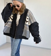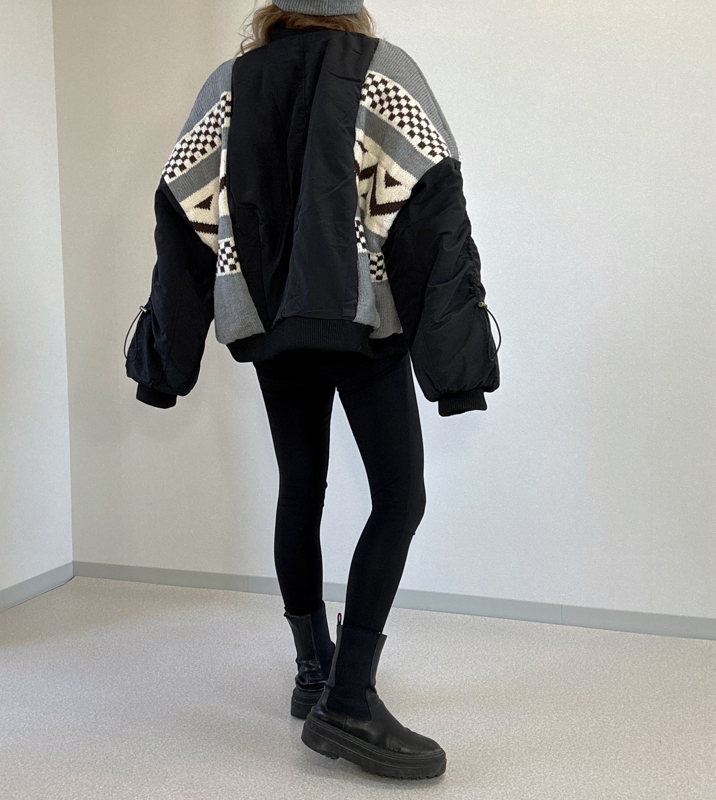 ジャカード編みニット リメイク MA-1 ジャケット black