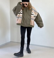 ジャカード編みニット リメイク MA-1 ジャケット khaki