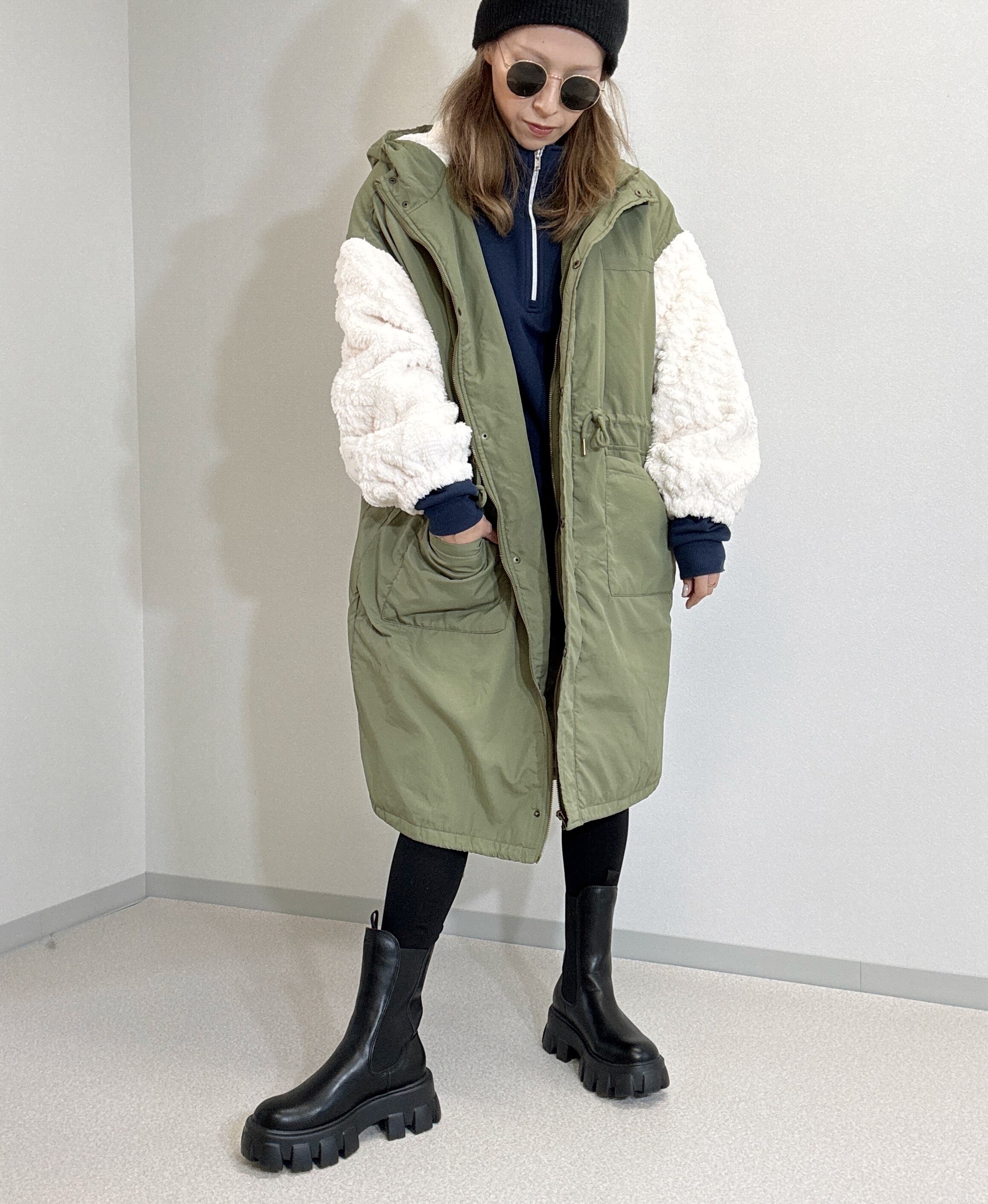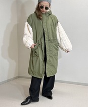寒い季節の装いをふんわり包み込む、異素材ミックスのロングモッズコート。