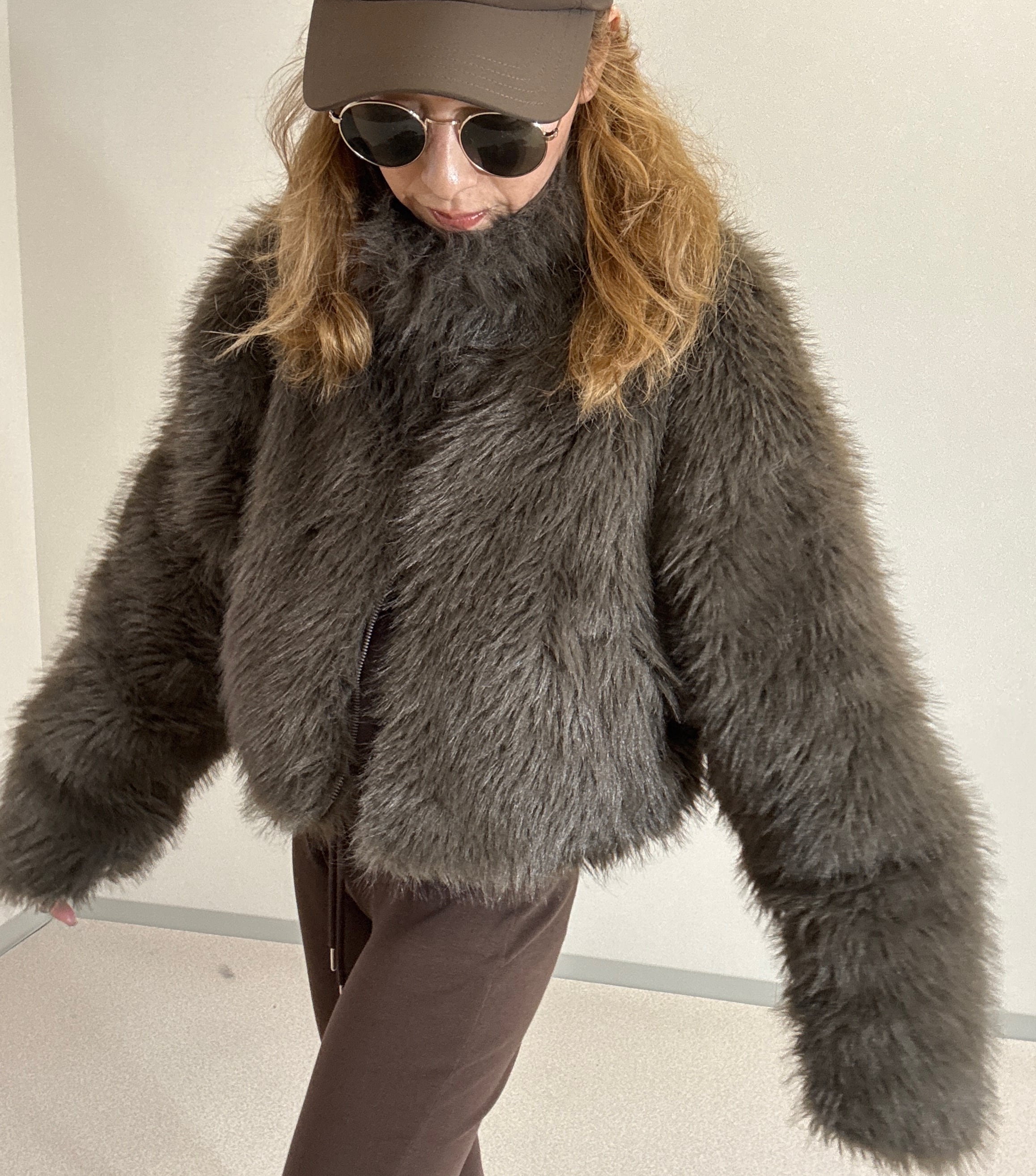 ・軽やかな着心地が魅力のフェイクファー素材を使用
