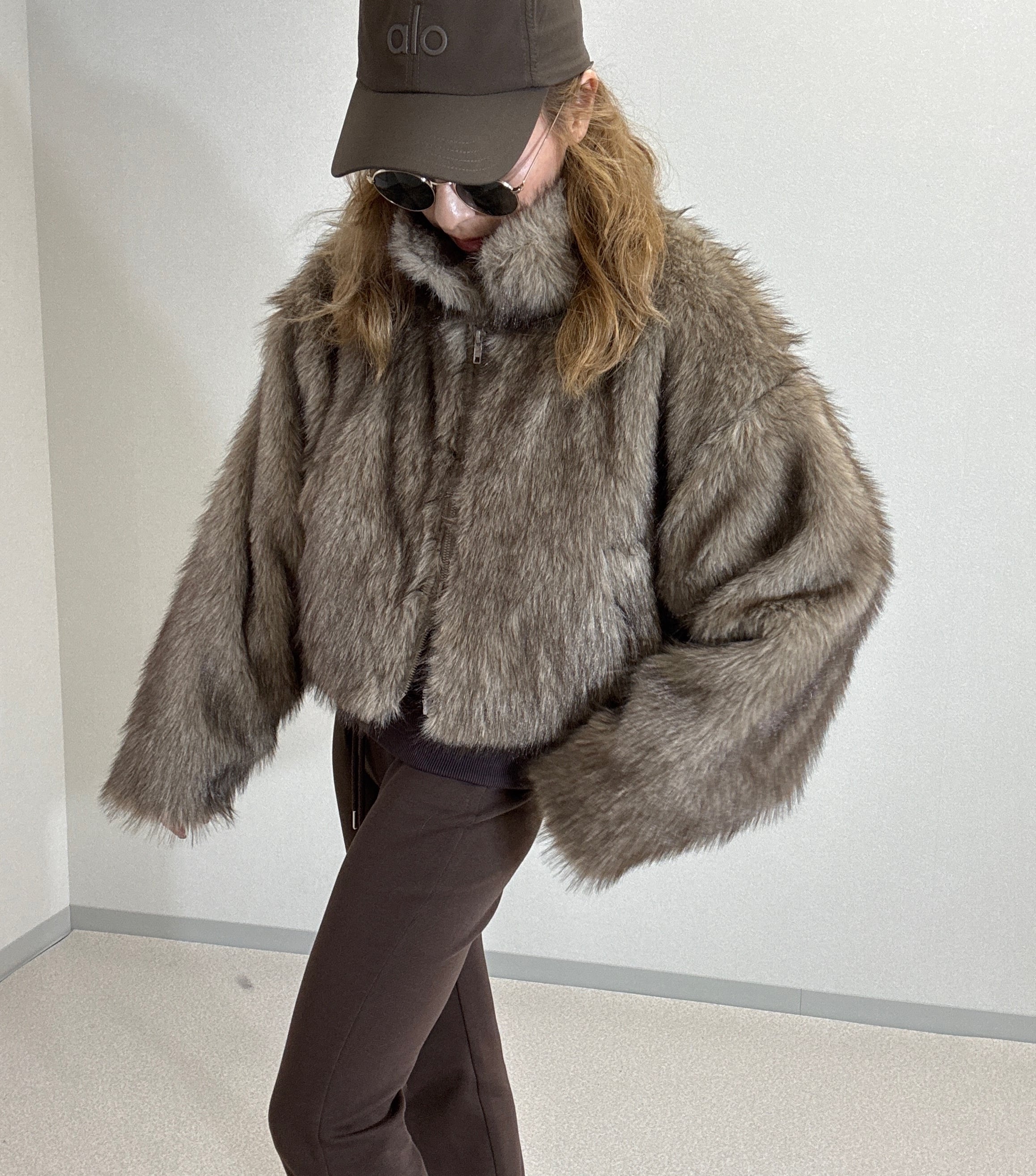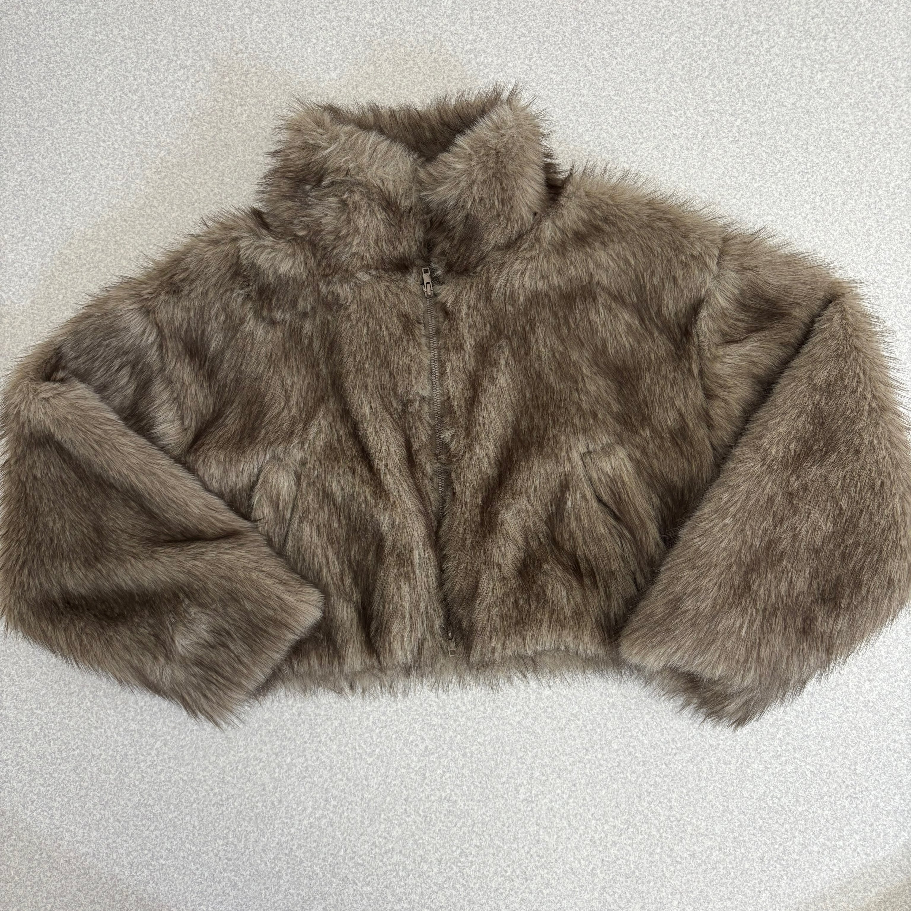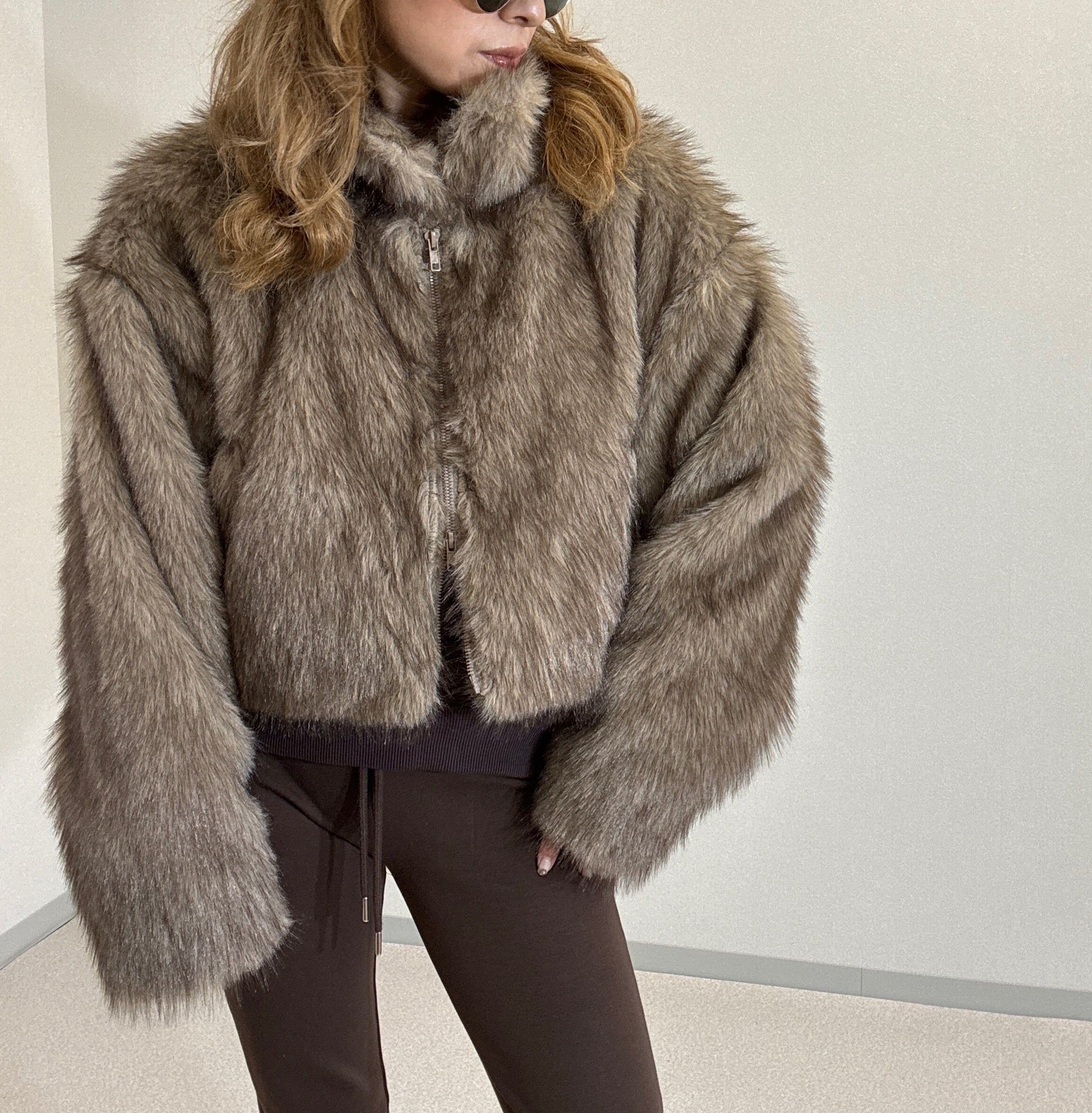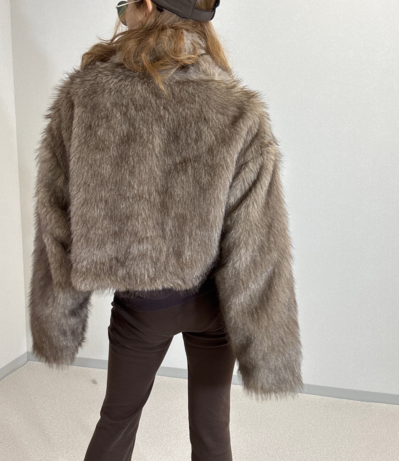 フェイクファーショート丈ジャケット brown mix