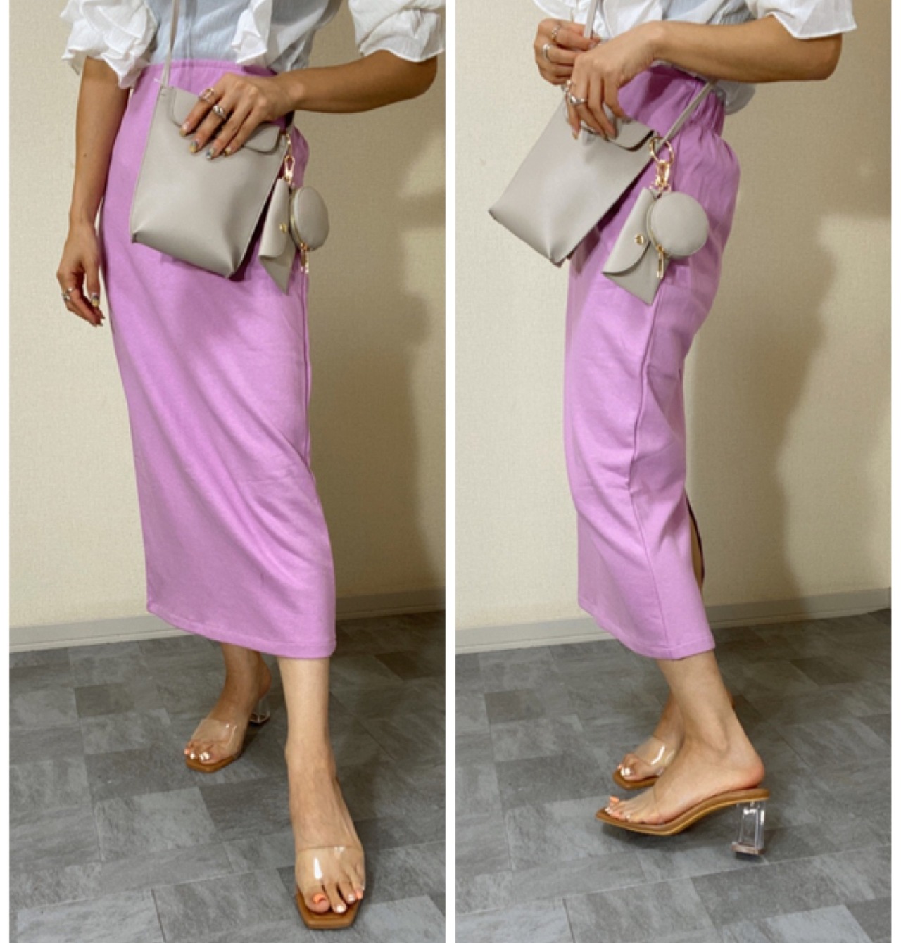 ・ウエストの後ろ部分がゴム仕様になっているので、お腹周りがラクチンノンストレスなタイトスカート!