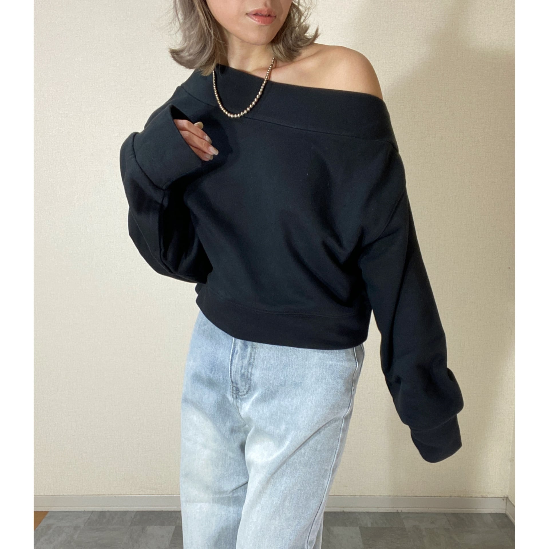 ショート丈のゆったりとしたサイズで女性らしい着こなしに◎