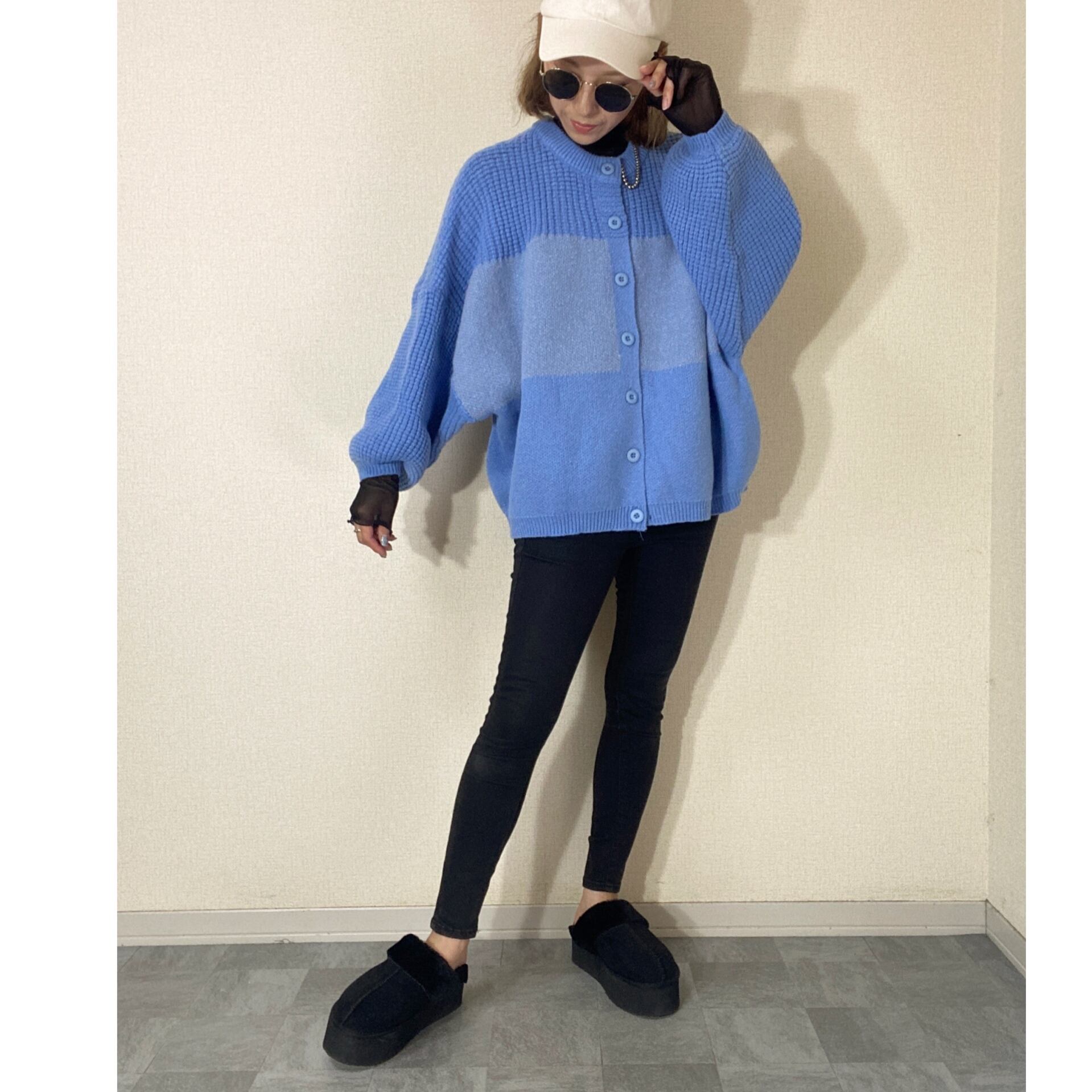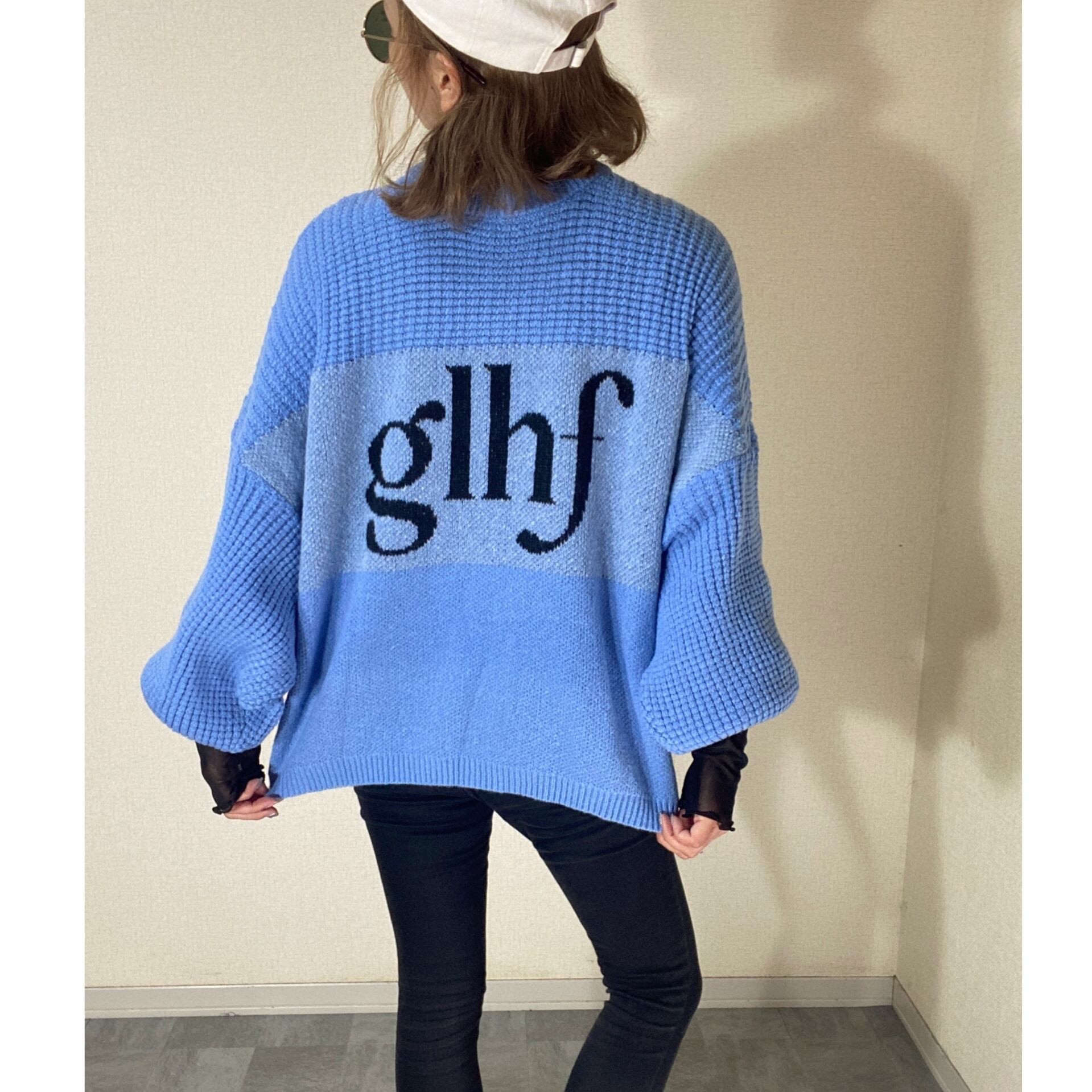 前後2WAY ロゴジャガードカーディガンニット blue