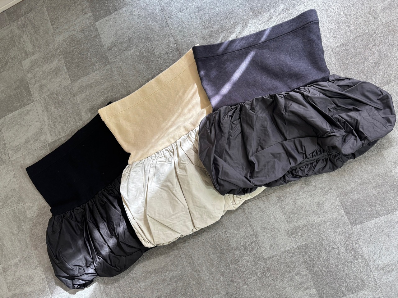 ※ニットx布帛 バルーン ベアトップ☆下部のみ裏地付きです!上部はニット使用、下部は布帛使用です!