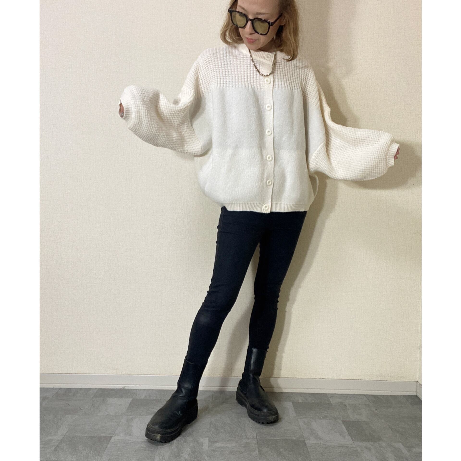 が特徴のカーディガンです。ゆったりとしたシルエットで、