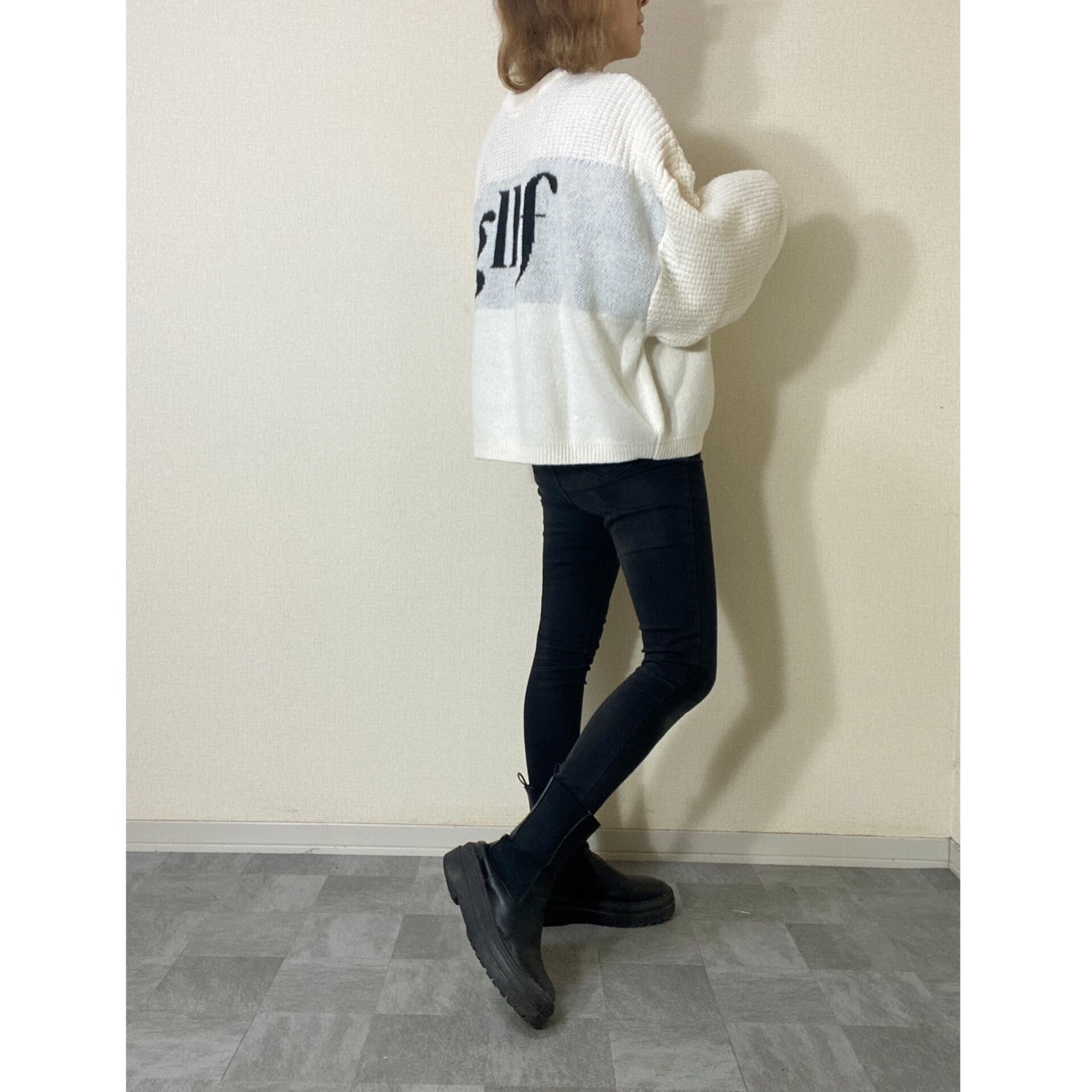 前後2WAY ロゴジャガードカーディガンニット